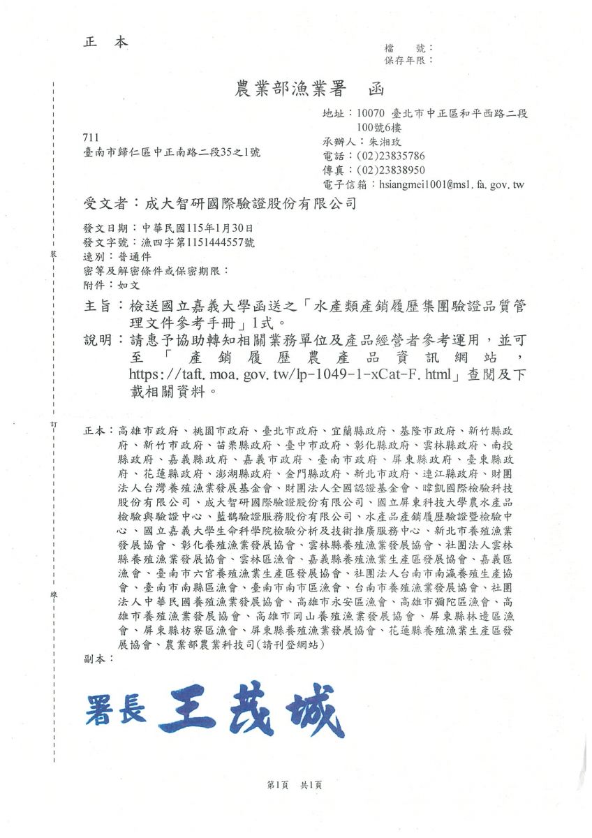 【轉知】014-農業部漁業署「水產類產銷履歷集團驗證品質管理文件參考手冊」